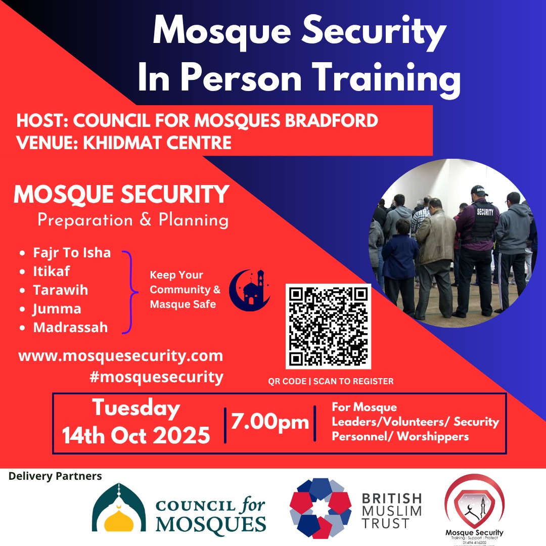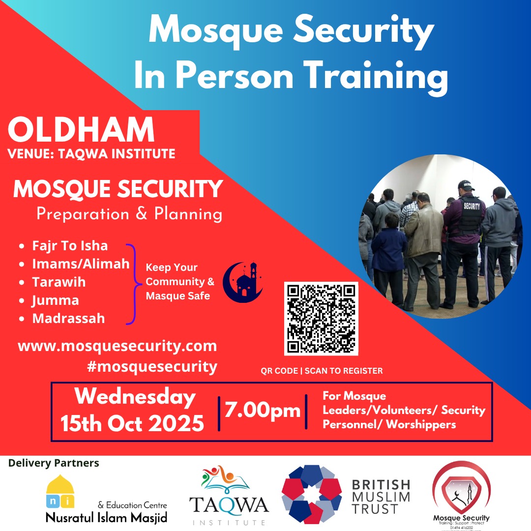Register to attend our upcoming mosque security briefings, specialist training sessions, and community safety events designed to strengthen preparedness, awareness, and resilience.