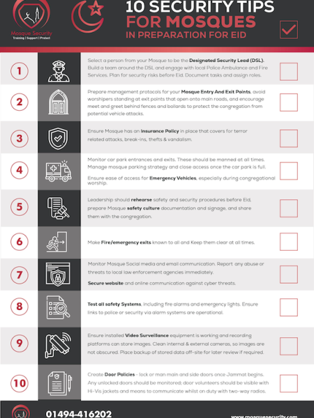 Our publications provide clear, practical guidance to support mosques, Islamic centres, and community leaders in strengthening security and preparedness. These resources are designed to be accessible, proportionate, and grounded in real-world mosque environments, supporting informed decision-making and community reassurance.